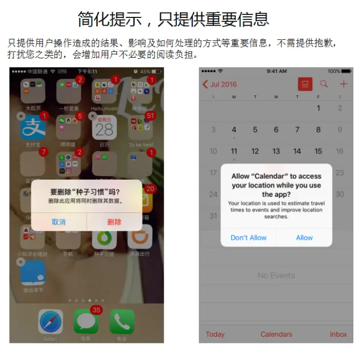 - 不要打断用户的意识流,避免遮挡用户可能会去查看或操作的对象。
