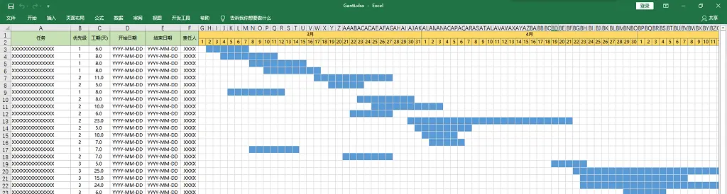 但凡提到计划,几乎必有甘特。尤其是在 PPT 当中,敢情不拉一张甘特图,你这项目管理的专业度都要打折扣。制作甘特图有很多专业工具,比如 Microsoft Project, 以及那些需要投入一定学习成本的资深产品。作为一名半路管理工作者,我在绝大多数的情况下,就用“Excel手绘”,简单明了,方便快捷,重点是学习成本为零。