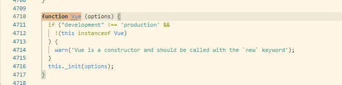 打开一看,一万多行! 无从下手啊,没关系。搜索“function Vue”,在4710行找到了vue的构造函数,