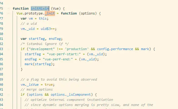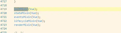 接下来的是_init的函数,查找一下先,在4576行找到了它。但是它是包含在一个initMixin函数中的,这个函数又是干嘛用的呢,先在这插个眼,我要先去找找这个initMixin是在什么地方被调用的。