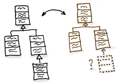 起初的继承体系很小,随着不断添加新类,继承体系越来越大,也越来越难修改。