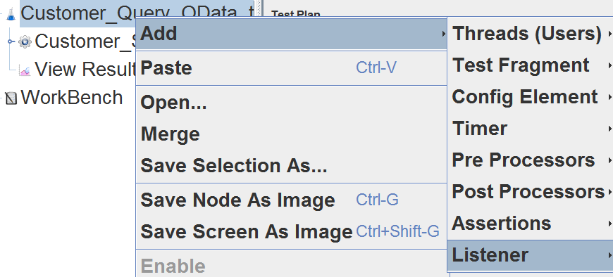 - Create a new test plan for example Customer_Query_OData_test, and right click on it and create a thread group from context menu.