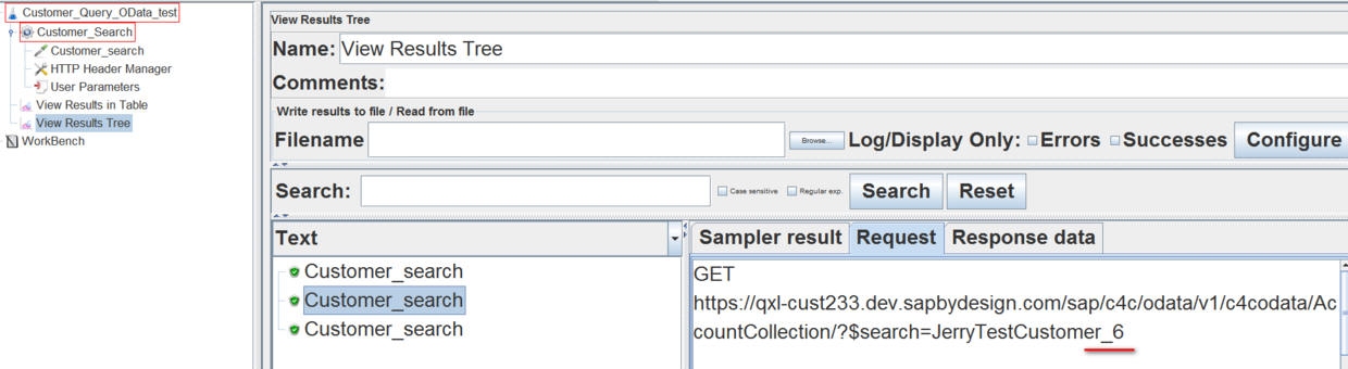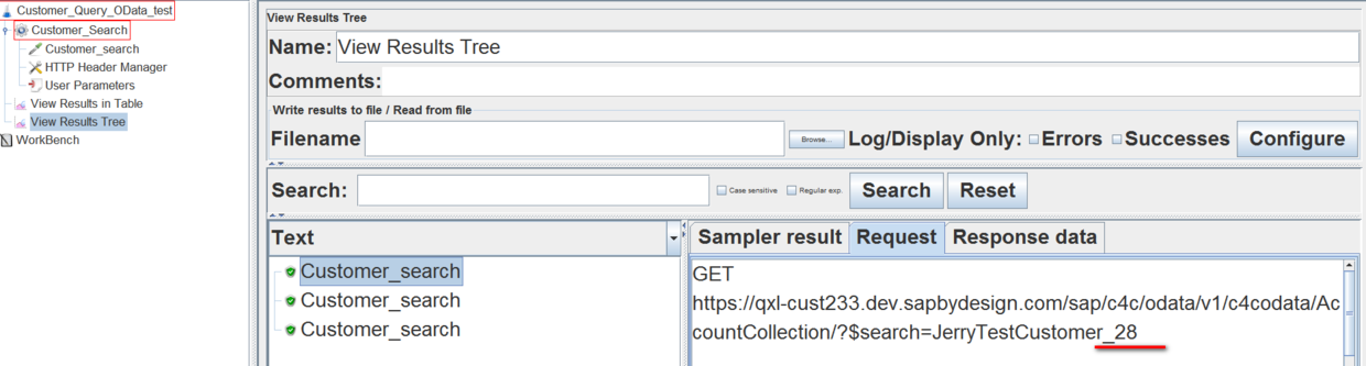 在http请求里,用固定的前缀JerryTestCustomer_加上随机参数,以此来构造随机搜索字符串: