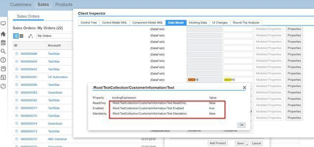 首先进入调试模式,查看到这个字段绑定到UI模型的TextCollection/CustomerInformation上