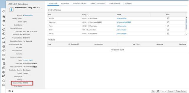 那么我怎么知道External Note对应的typecode的值呢?这个好办,在系统里维护一条带有External note数据的销售订单,比如这条: