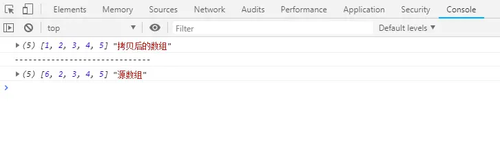 由此得出他们指针都指向了同一个内存地址,[...copyArr]拷贝并没有开辟新的内存空间,当时也很纳闷,而且也思考了很久,然后再去亲手试,直接上图