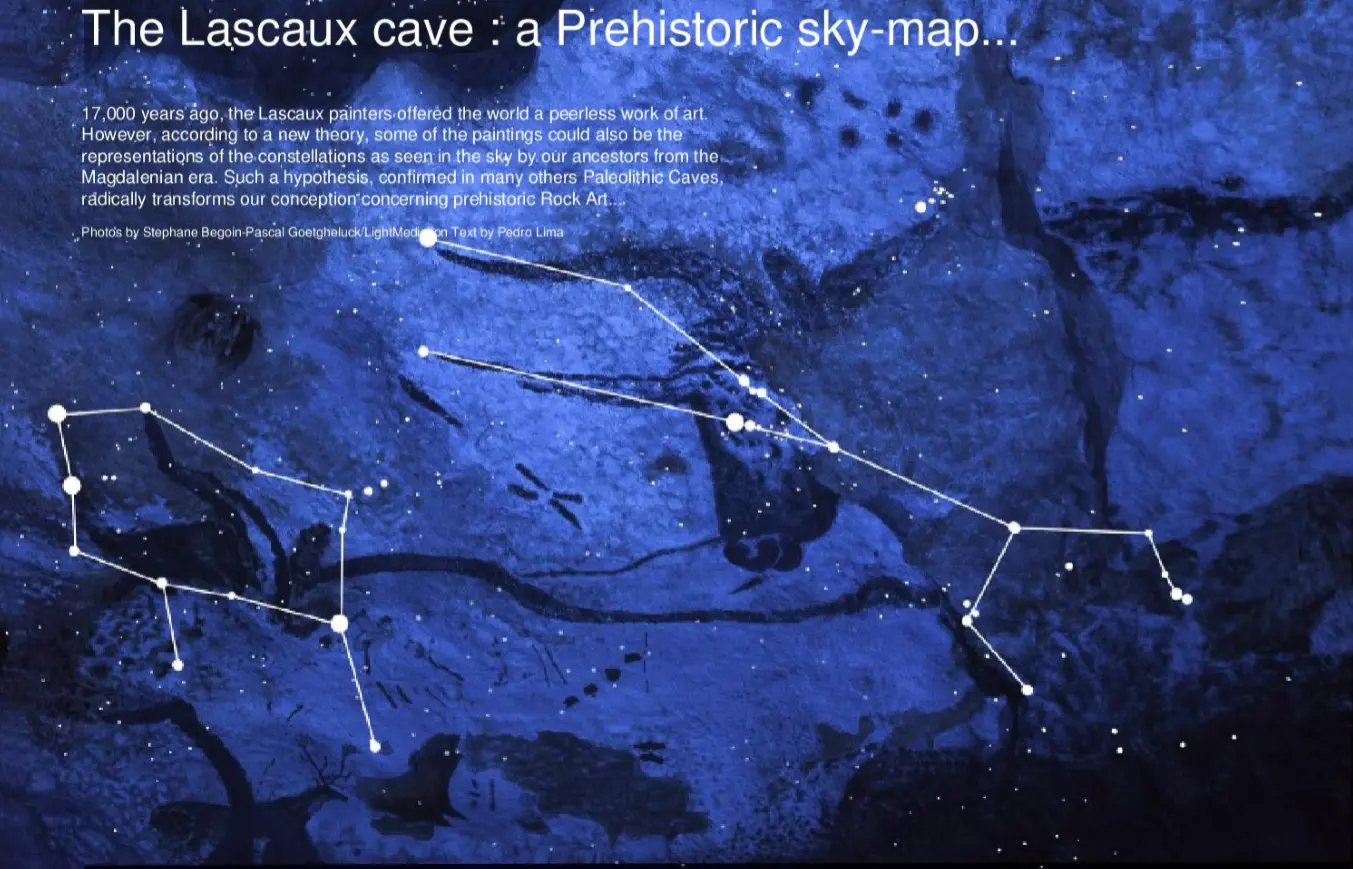 在某些动物因为迁徙消失的季节里,某些星星却出现了。而这些星星拟合起来,恰好有点类似这些动物岩洞上壁画的样子。