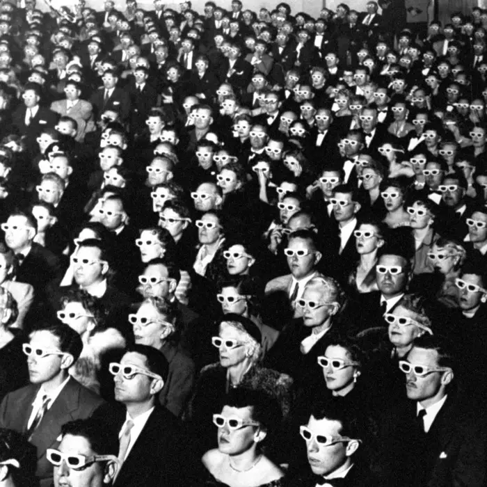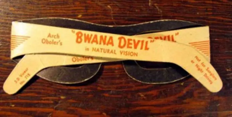 将近六十年后的1952年,好莱坞的观众们静静地在座位上看完了 Arch Oboler 执导的《Bwana Devil》。这是一部基于真实事件改编的,关于野兽袭击非洲铁路工人的电影,内容上说实在是乏善可陈,在IMDB上只有5分不到。与众不同的是,这是第一部彩色3D电影,观众们为了获得完整的的观影体验,每个人都戴上了一副红绿眼镜。