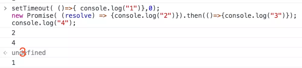 根据前面的结论,上诉代码的打印顺序为 2,三秒后打印1 ,印证正确。