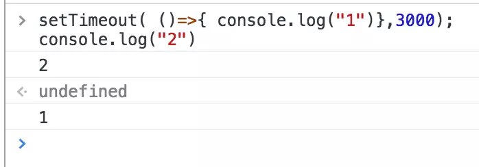 结果是打印1 的结果需要的时间远远超过3秒,这不符合我们想要的预期,我们想要的就是三秒后打印1 ,那么先看一下执行结果