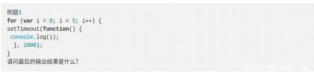 for循环一次碰到一个 setTimeout(),并不是马上把setTimeout()拿到异步队列中,而要等到一秒后,才将其放到任务队列里面,一旦"执行栈"中的所有同步任务执行完毕(即for循环结束,此时i已经为5),系统就会读取已经存放"任务队列"的setTimeout()(有五个),于是答案是输出5个5。