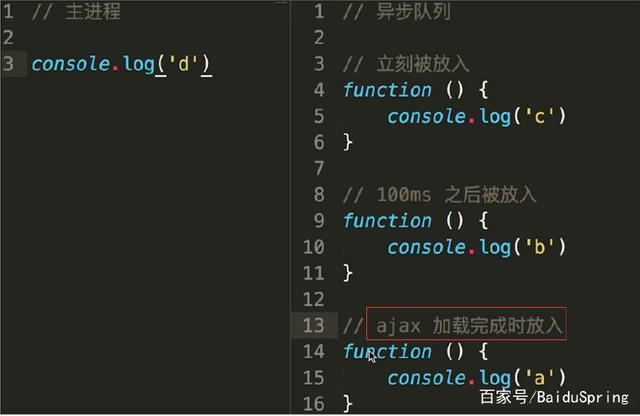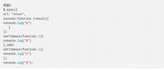 ajax加载完成时才会放入异步队列,至于这段时间不确定,所有有两种情况:①大于100ms,最后的结果是 d c b a ;②小于100ms,最后的结果便是d c a b。