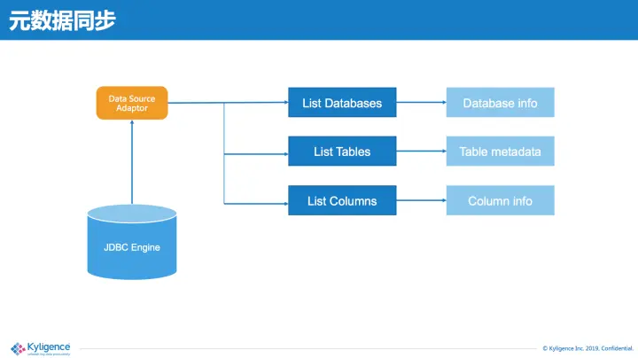 首先,拿元数据同步来讲,标准的JDBC接口就实现了获取数据库、表、列的API。但不同数据库的实现方式可能不同,以及某些开发者不希望把系统库、系统表暴露给分析师,这些需求都可以在Adaptor中实现。