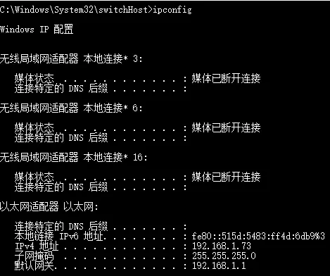 在 Windows 下输入 ipconfig,我们会看到这个界面: