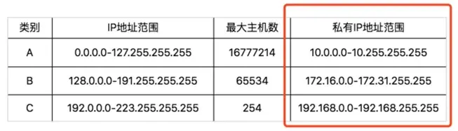 表格中的 192.168.0.x 是最常见的私有 IP 地址段。就像我们家里的路由器地址一般是 192.168.0.1 一样。