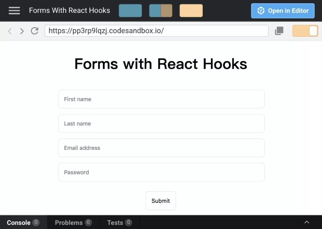 通过尝试在表单中输入文本来检查一切是否正常工作。 如果一切正常,恭喜你,你刚刚使用了一个React Hook。 如果没有,那么再看一遍本教程,确保你没有跳过任何说明。
