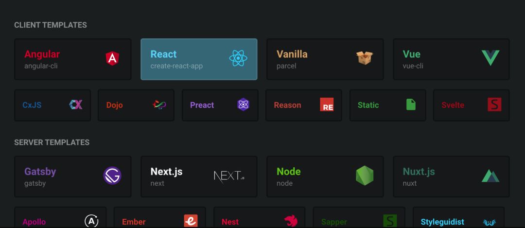 访问 codesandbox.io,创建一个帐户,登录,并创建一个新的 sandbox ,当创建 sandbox 时选择 React。