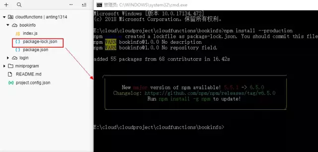 2.在cmd打开云函数目录中,安装依赖