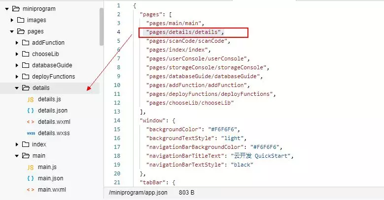 打开app.json, "pages/details/details",,自动生成了一个详情页: