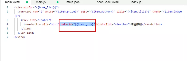 给这个字段设置一个值,data-id="{{item._id}}":