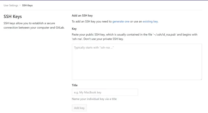 cat ~/.ssh/id_rsa.pubPS:目的是本地push的时候没有权限问题,方便直接提交代码到gitlab上。