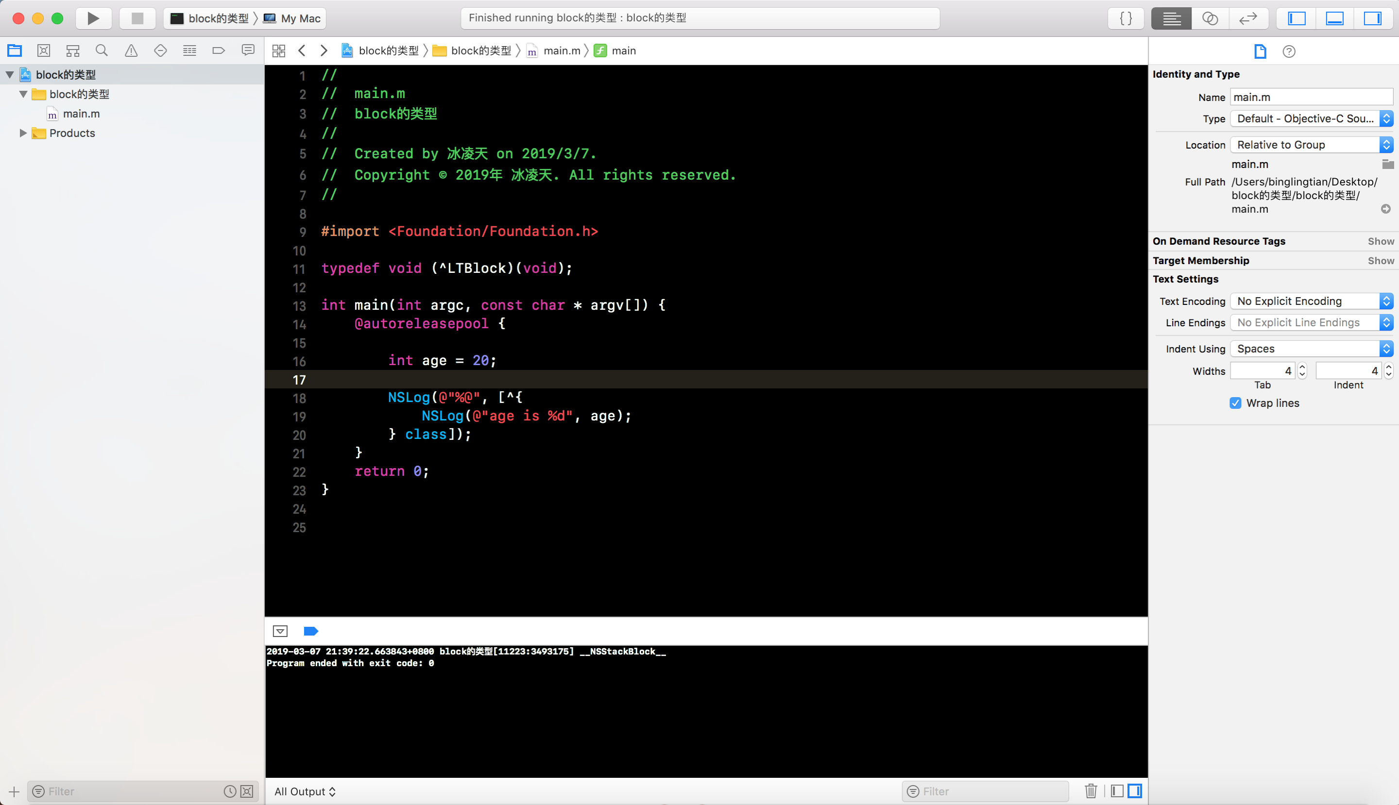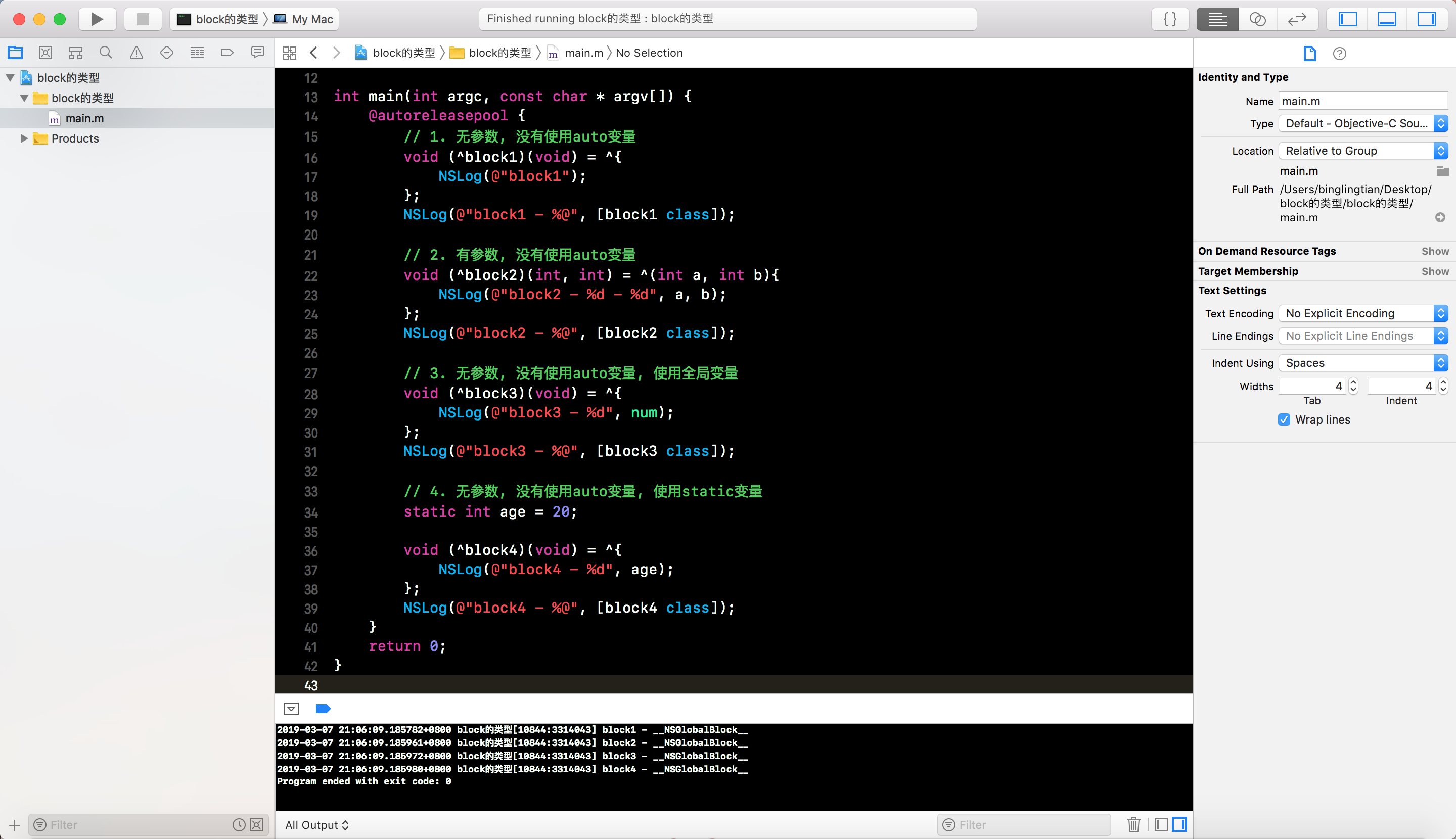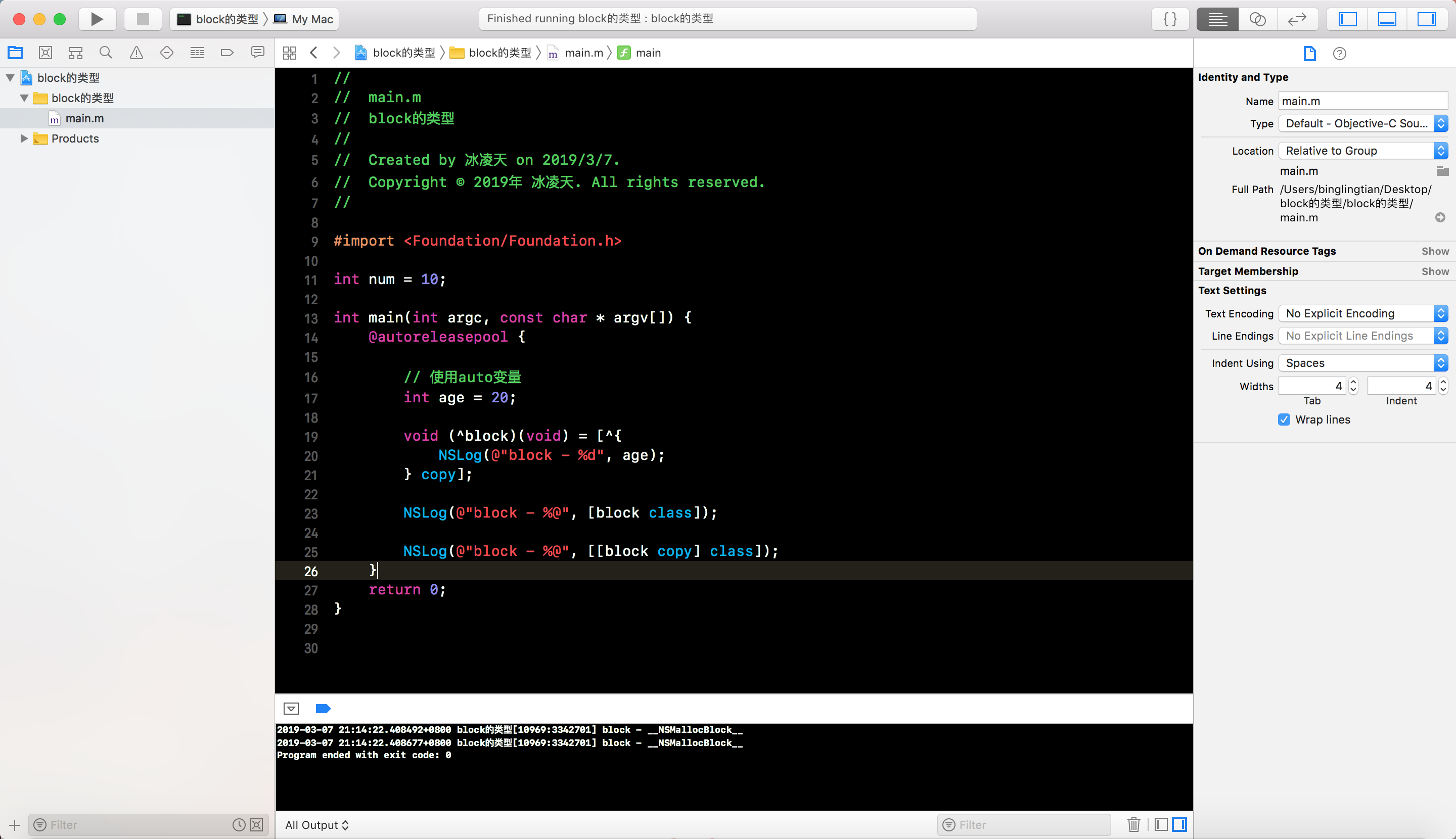 - 此时在block中使用auto变量, 可以看到