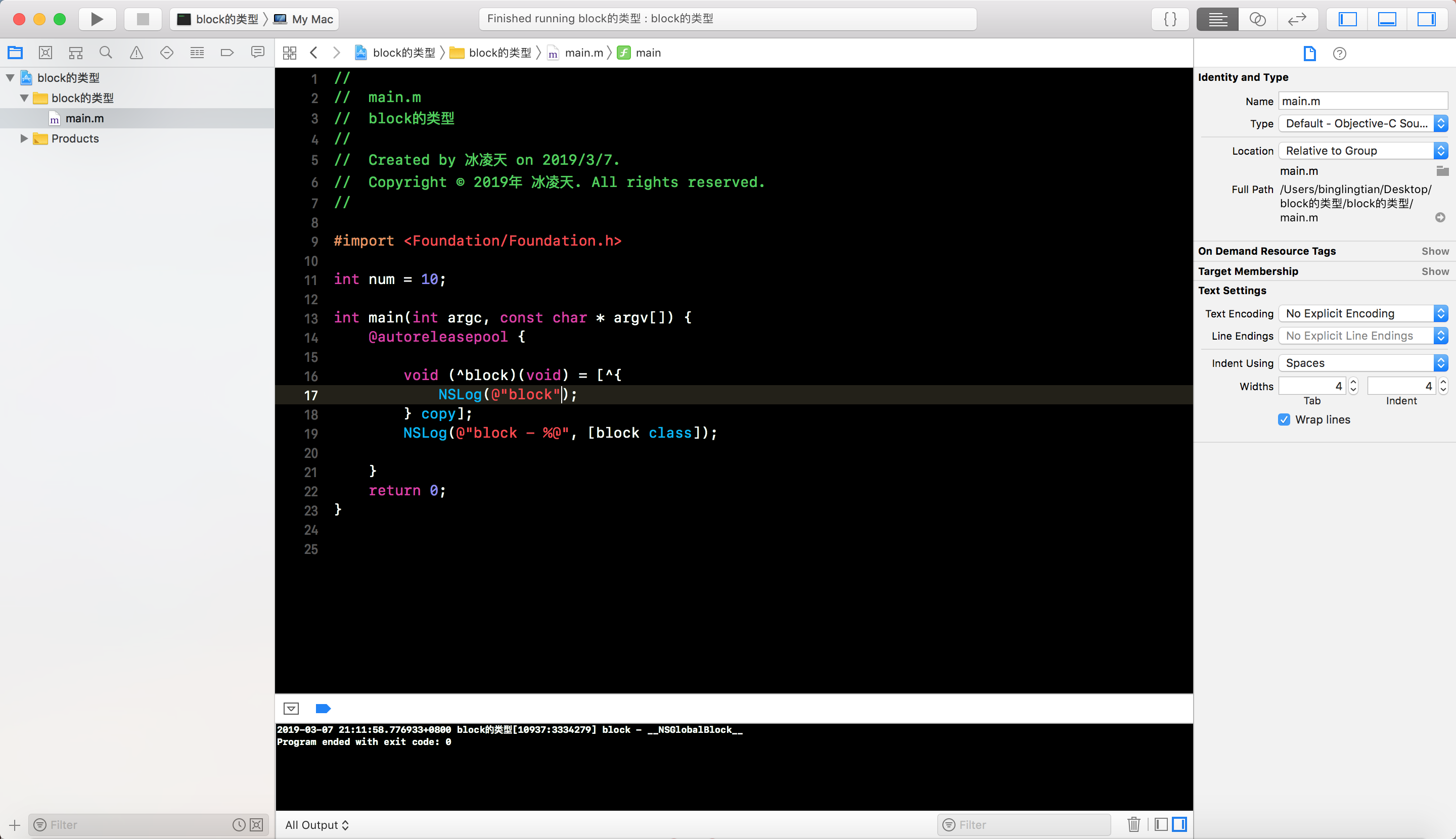 1、__NSStackBlock__类型的block做为函数返回值时, 会将返回的block复制到堆区