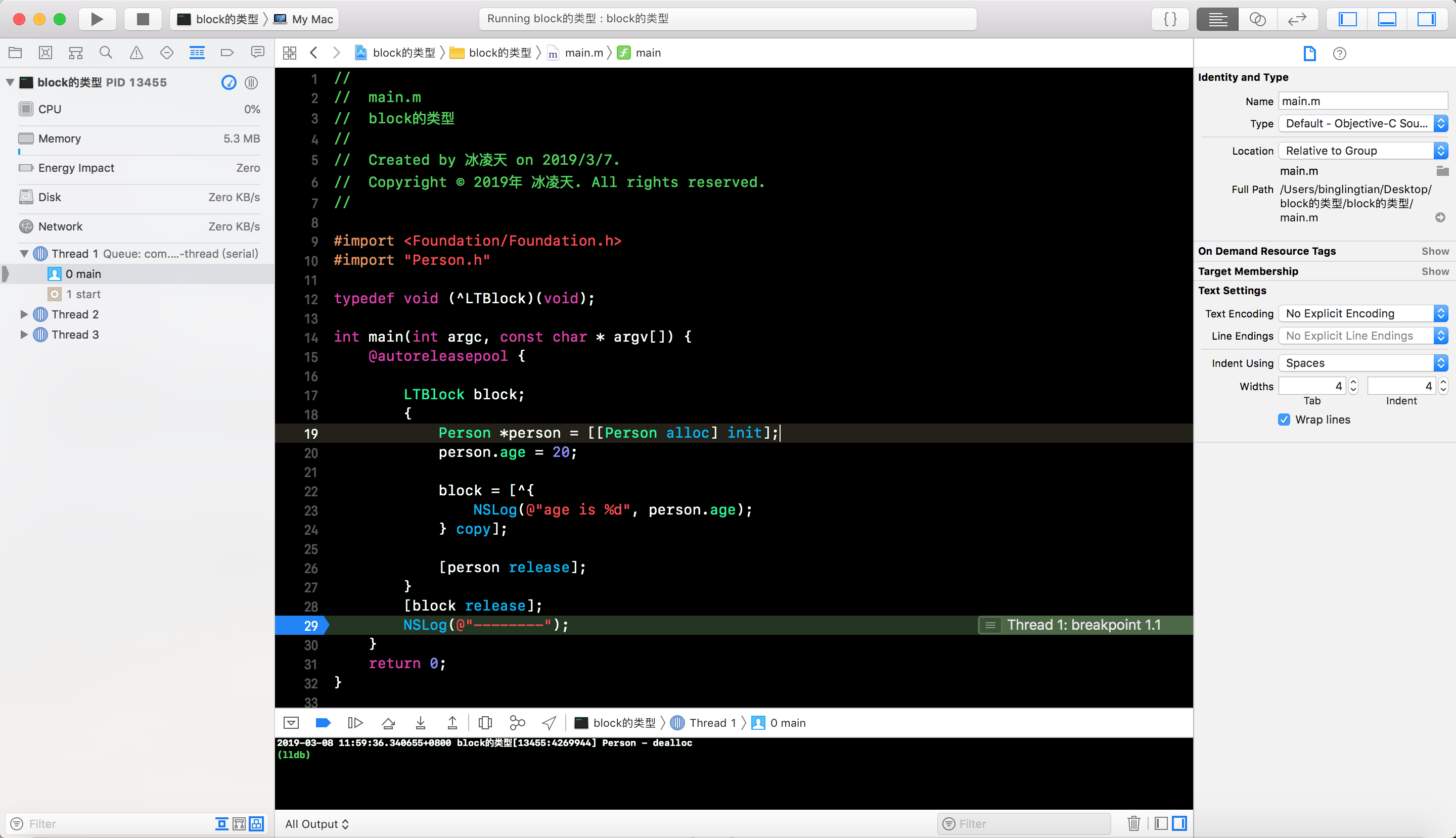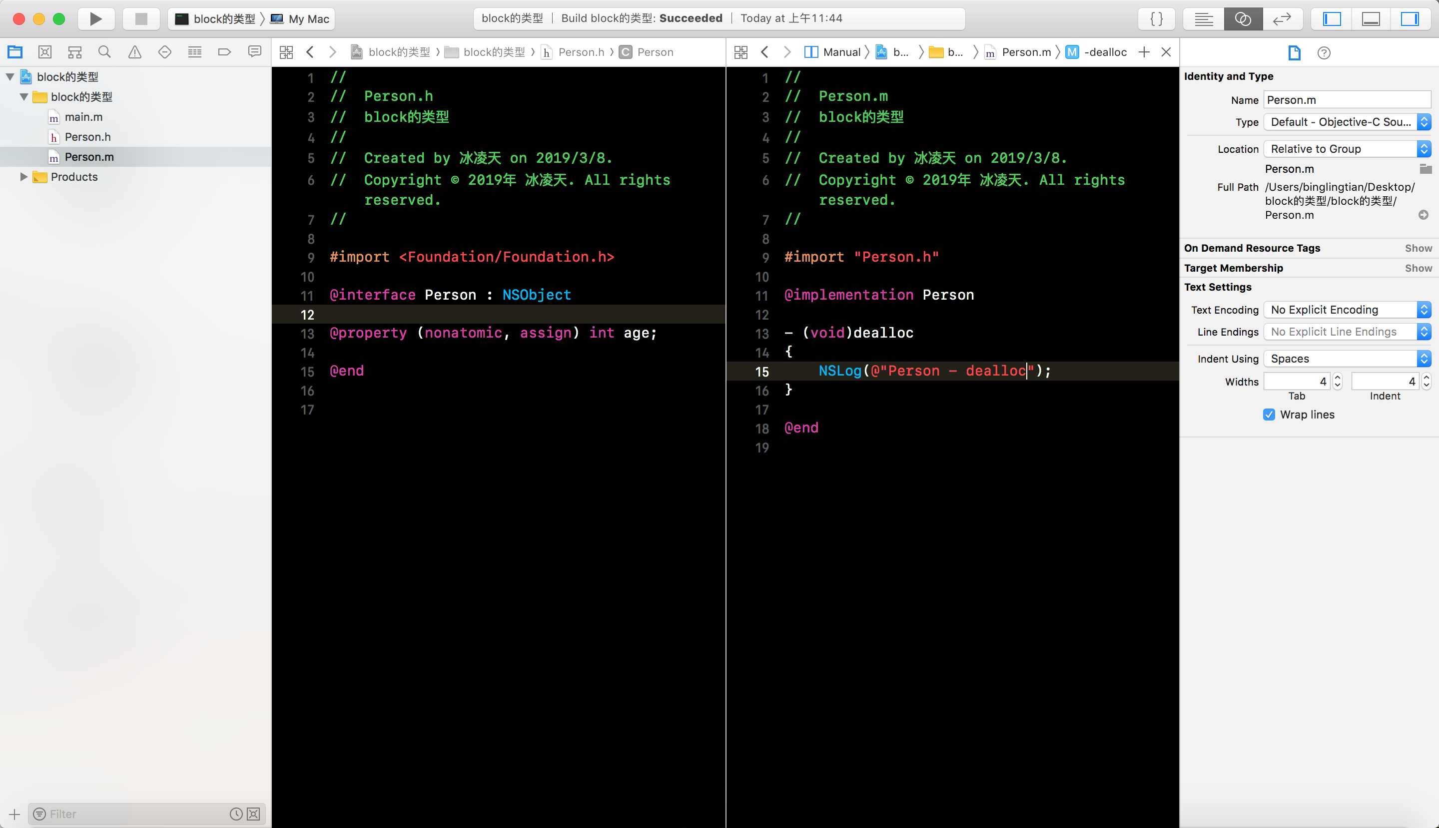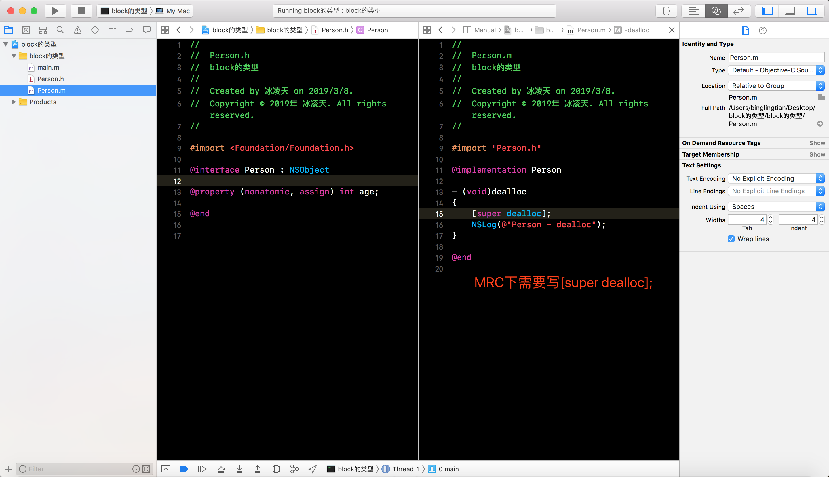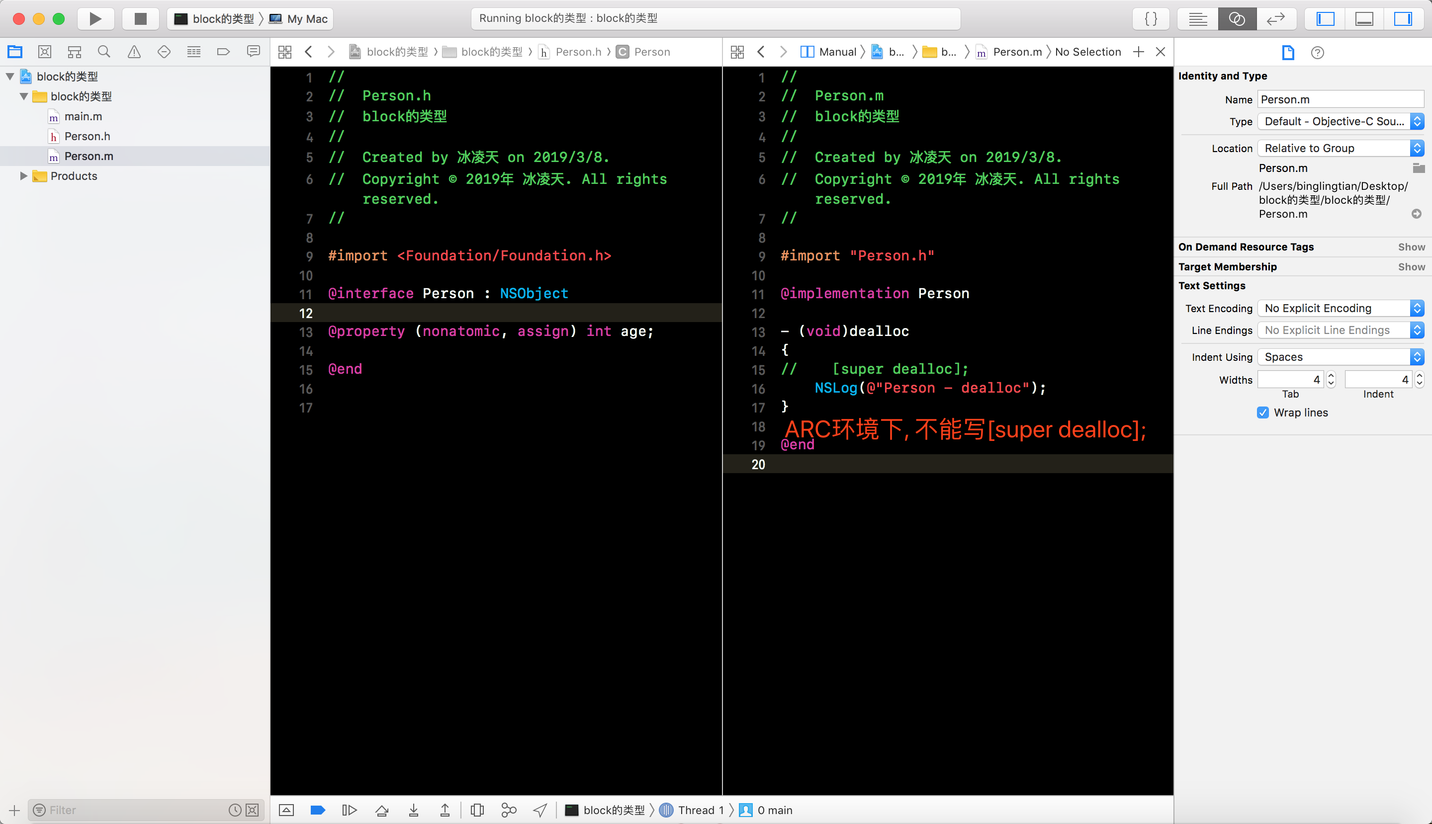 Person, 并添加一个age属性, 重写dealloc方法