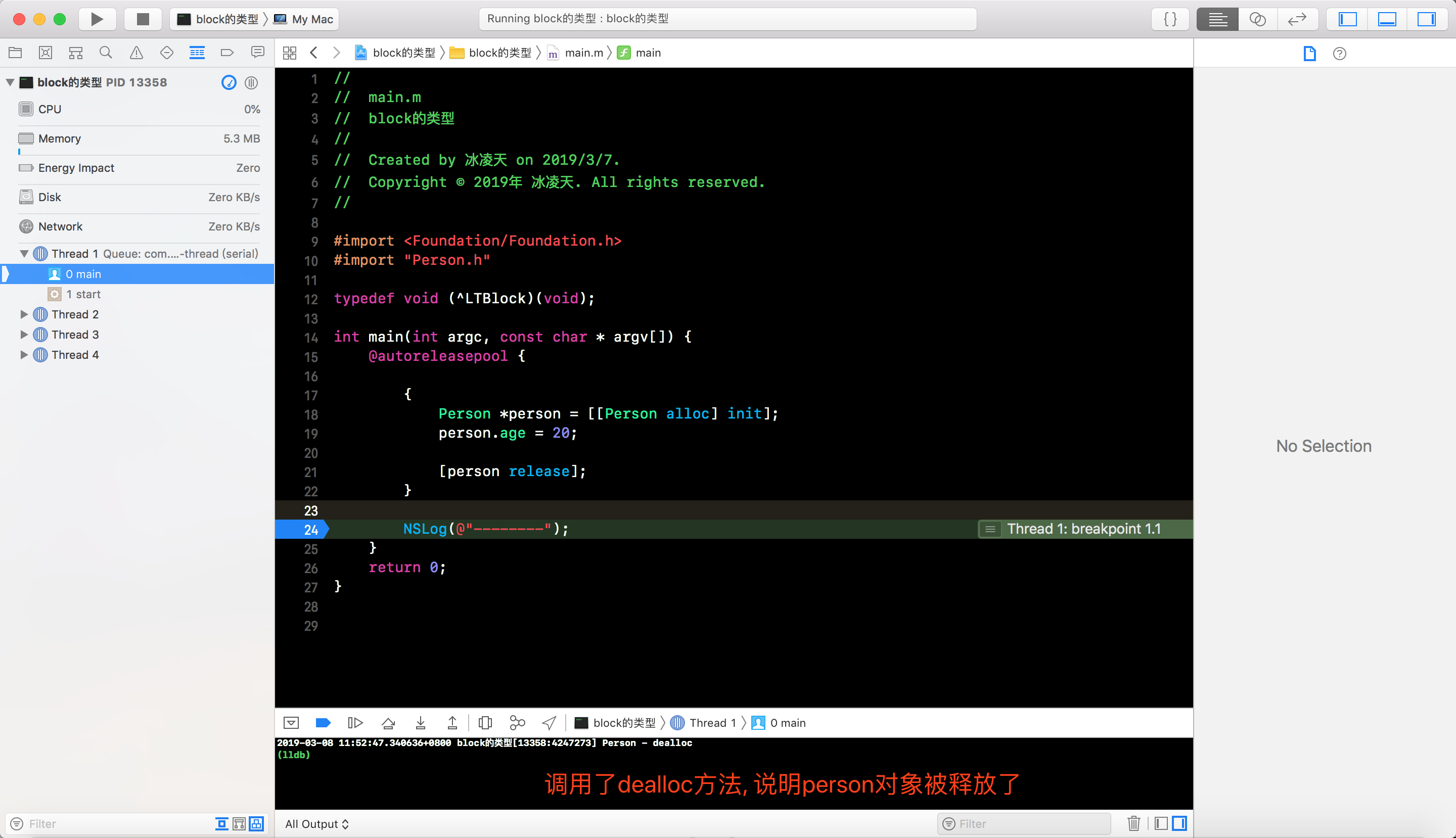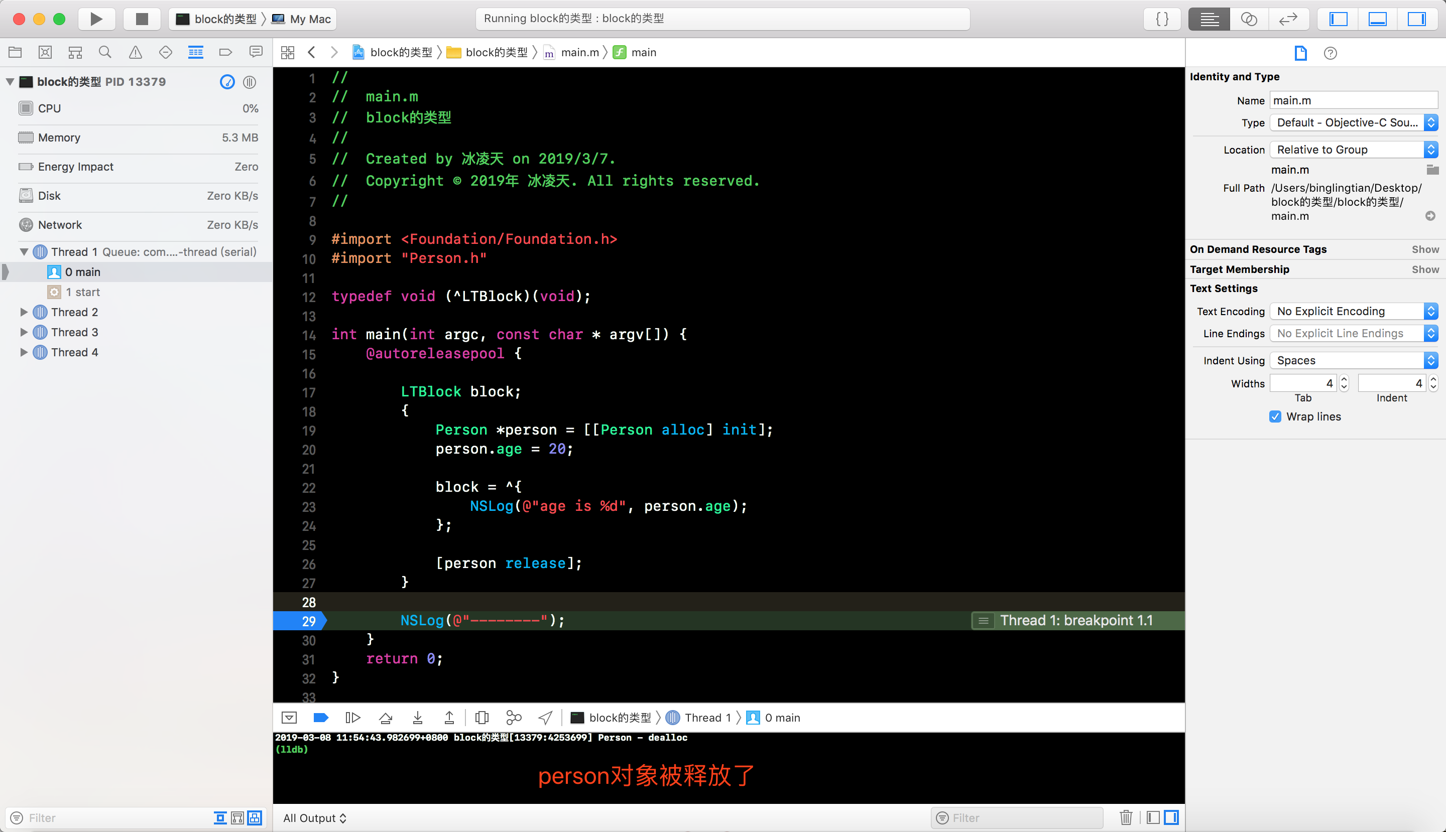 block, 可以看到person也被释放了