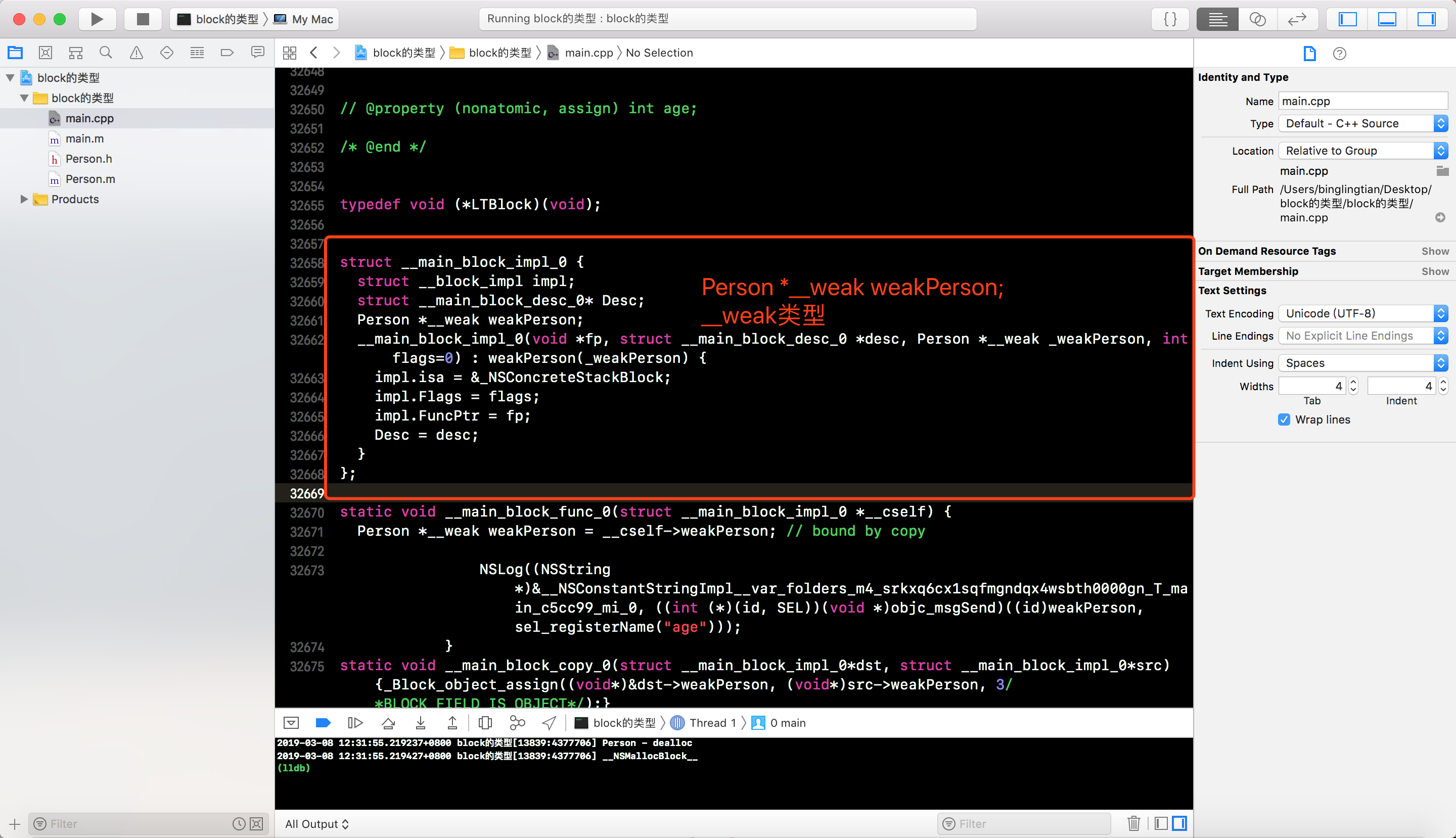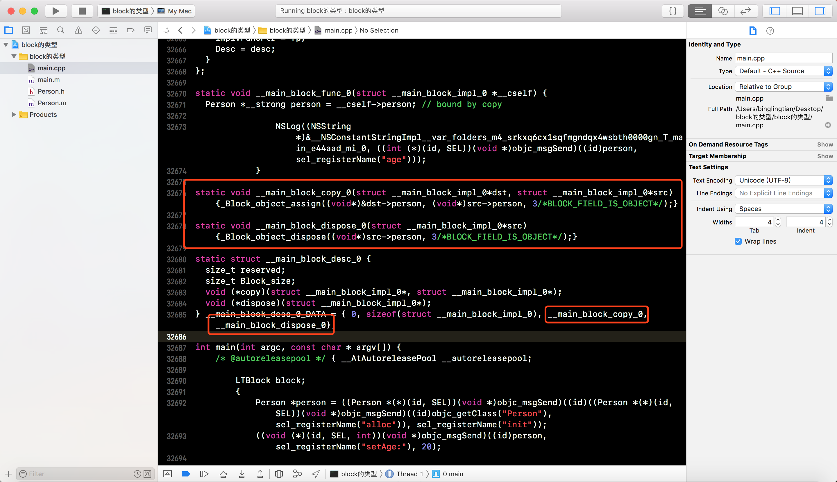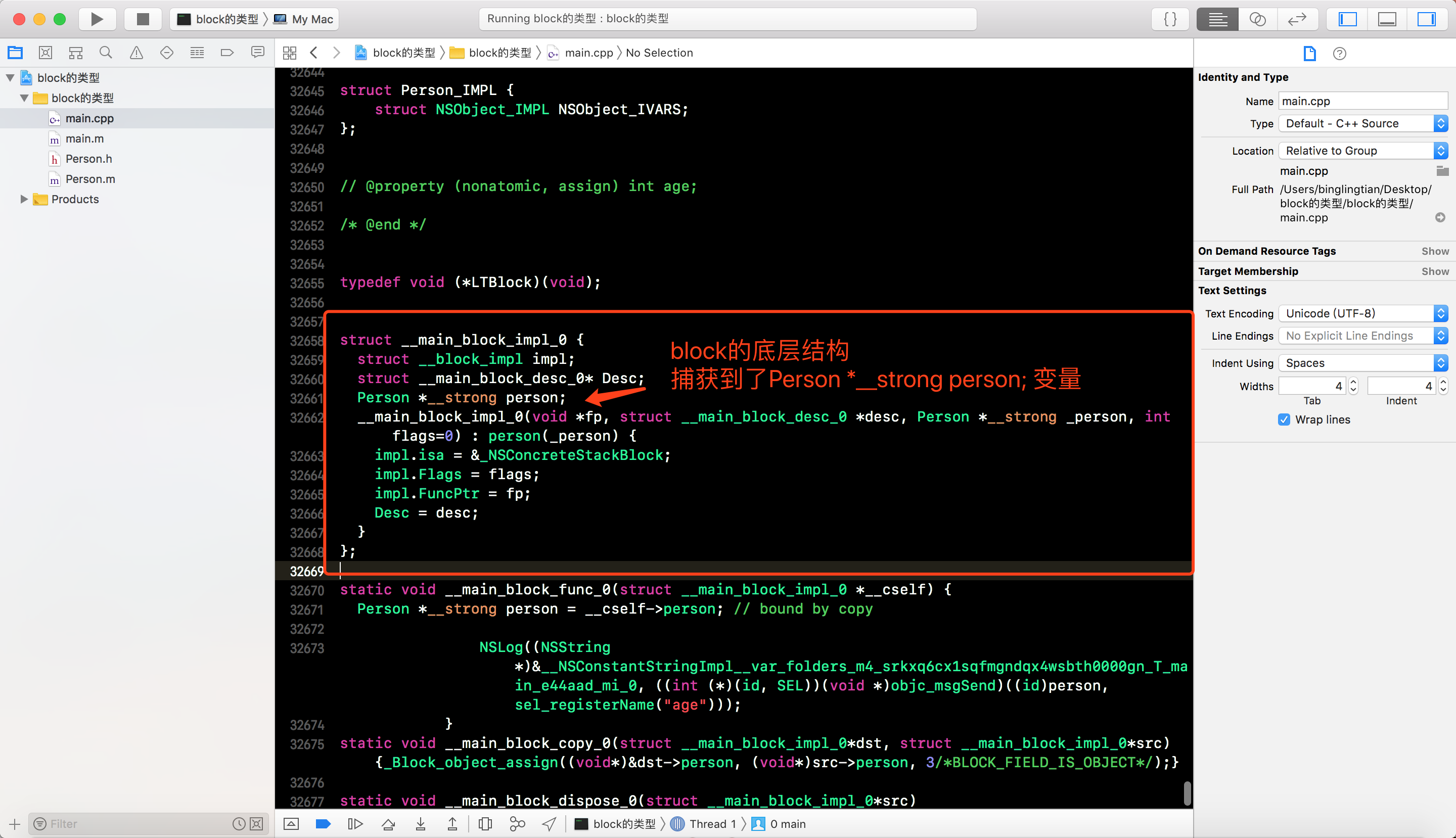 __main_block_impl_0中捕获到了personauto变量, 并且是一个__strong类型