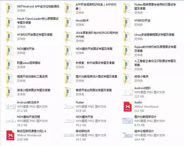 除了上面的面试题,我还总结出了互联网公司Android程序员面试涉及到的绝大部分面试题及答案,并整理做成了文档,以及系统的进阶学习视频资料,免费分享给大家。(包括Java在Android开发中应用、APP框架知识体系、高级UI、全方位性能调优,NDK开发,音视频技术,人工智能技术,跨平台技术等技术资料),希望能帮助到你面试前的复习,且找到一个好的工作,也节省大家在网上搜索资料的时间来学习。