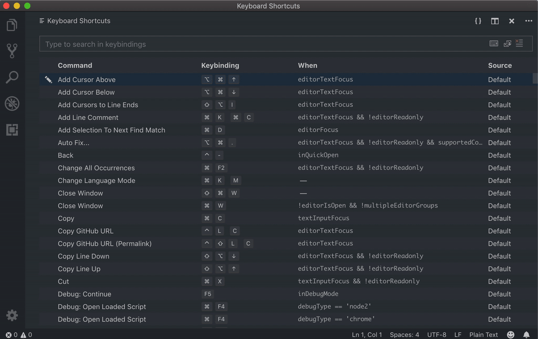 - Keyboard shortcuts editor improvements - 修改编辑器中的键绑定“when”条件。