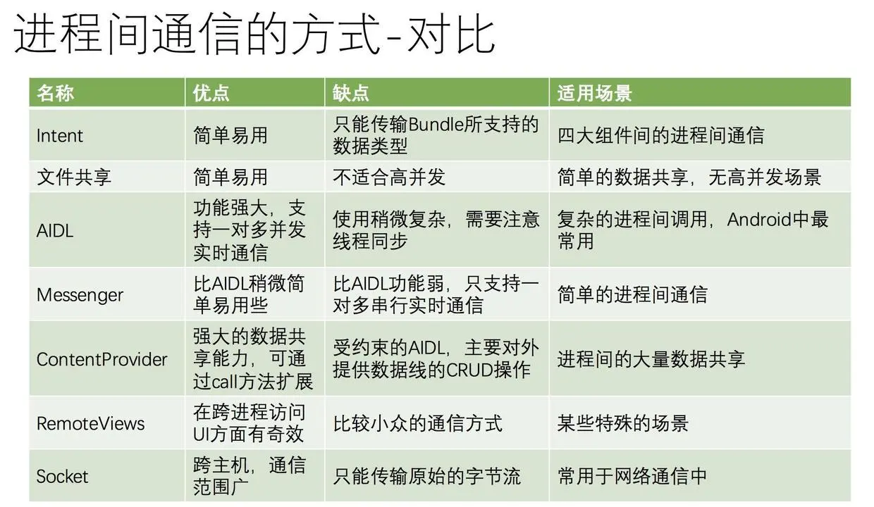 4、Android中IPC方式、各种方式优缺点,为什么选择Binder?