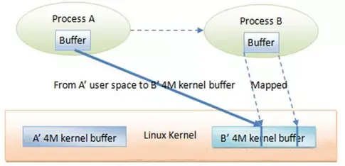 - 发送方进程通过系统调用 copyfromuser() 将数据 copy 到内核中的内核缓存区,由于内核缓存区和接收进程的用户空间存在内存映射,因此也就相当于把数据发送到了接收进程的用户空间,这样便完成了一次进程间的通信。