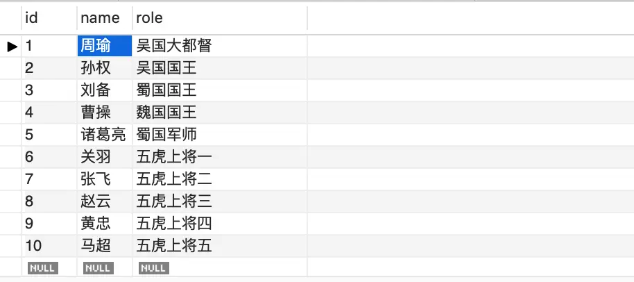 假如有这么一张表(表名:sanguo):