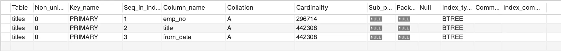 SHOW INDEX FROM employees.titles;