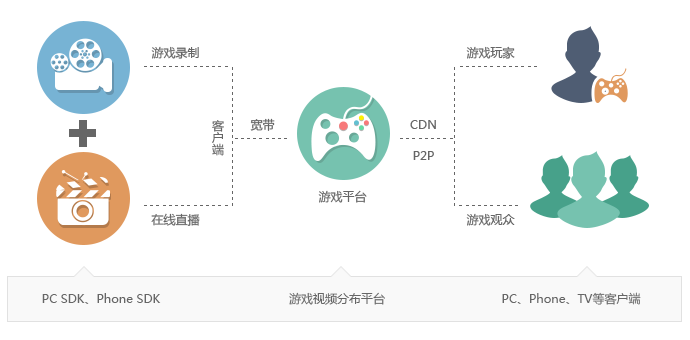 锐动SDK针对游戏直播提出的解决方案 思音 2019-03-08 522 阅读1分钟 方案架构 PC端视频直播与录播功能为游戏厂商宣传,玩家个人秀,大型电竞赛事提供完美的技术解决方案。 直播形式灵活多变不,同音源的选择,画面切换,游戏中嵌入摄像头丰,富解说画面。突出主播个人魅力与粉丝形成强烈共鸣。 应用场景扩展 点击立即体验(锐动SDK解决方案)