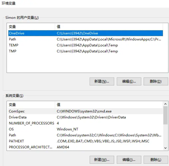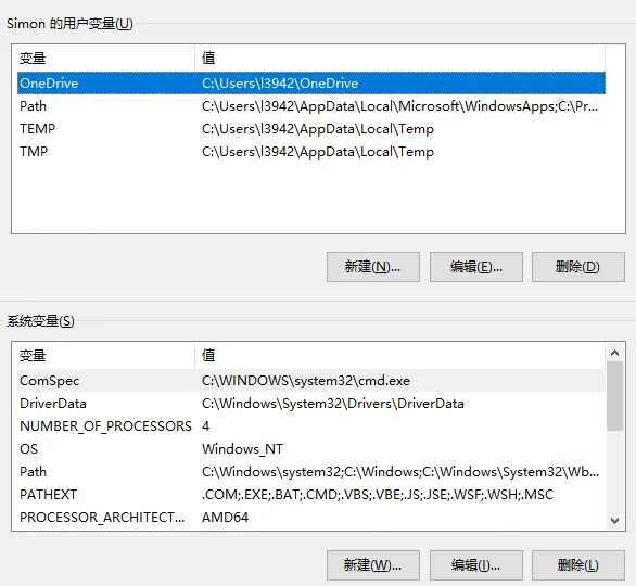 用户变量,表示当前用户的才有的环境变量,比如问我登录的 'Simon' 账号,则Simon的用户变量生效,如果我登陆的lucy的账户,则变成lucy的用户变量,和登录用户有关系。