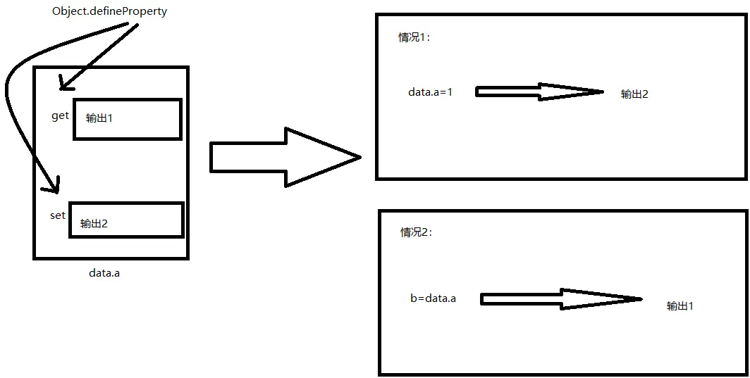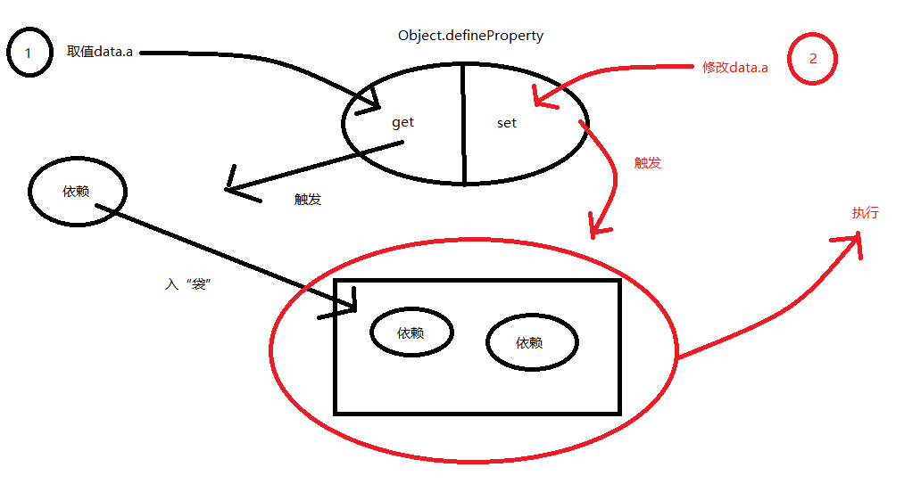 data.a; // 读取属性,触发Object.defineProperty的get方法
