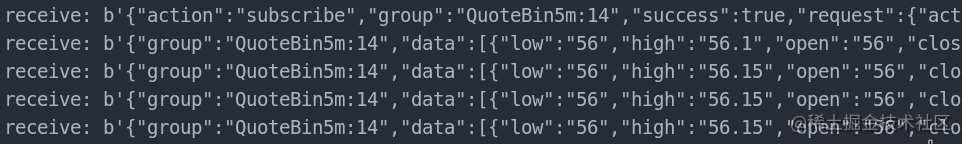 await converse.send('{"action":"subscribe","args":["QuoteBin5m:14"]}')
