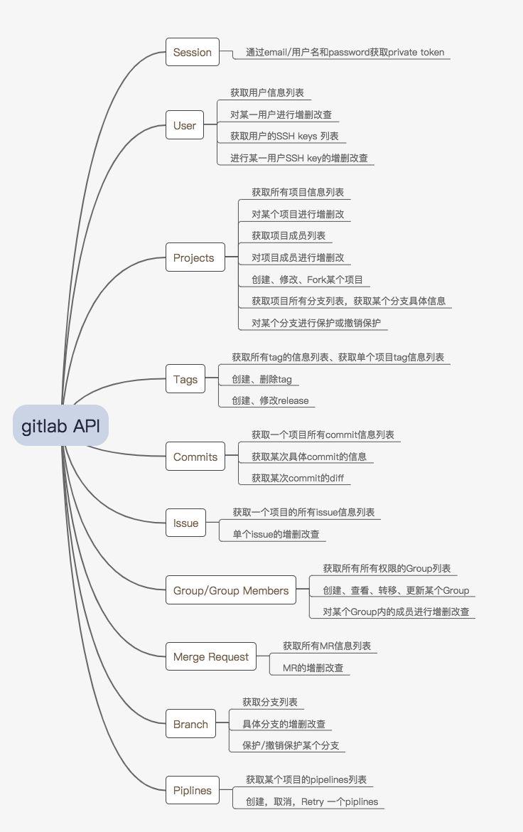 可以看出,gitlab API十分强大,下面我们就看一下具体要怎么使用它。