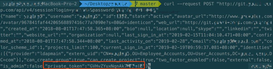 curl --request POST "https://gitlab.example.com/api/v4/session?login=yushihu&password=xxxxx"