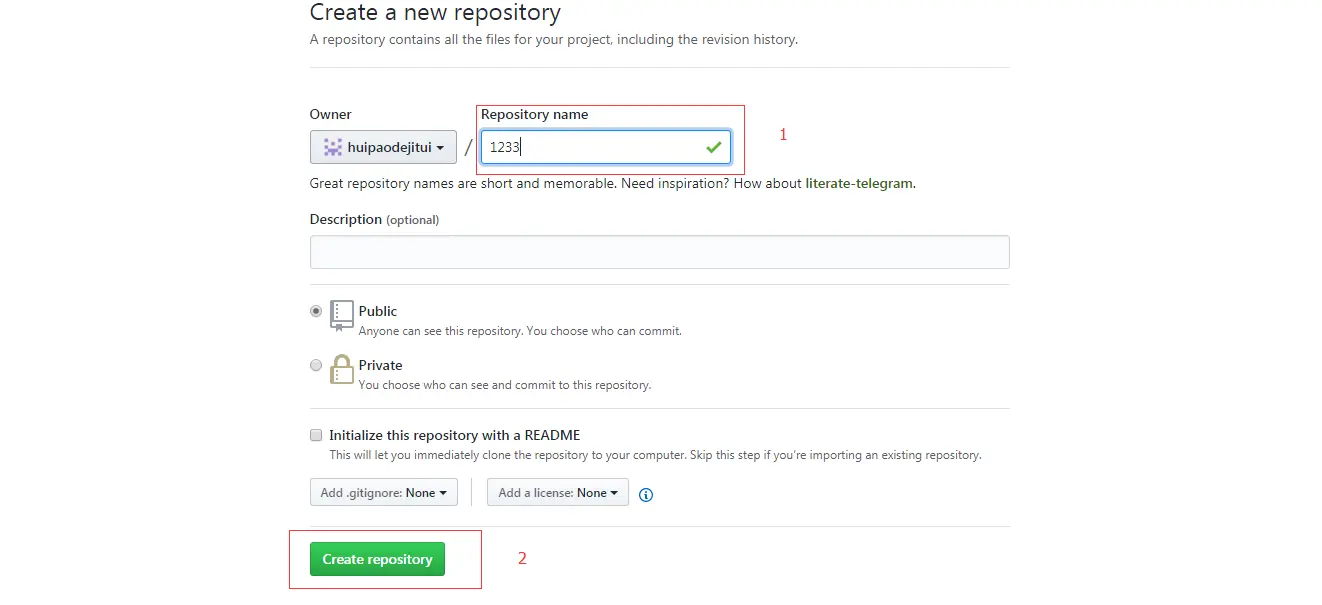 2、给项目一个名称,点击create repository