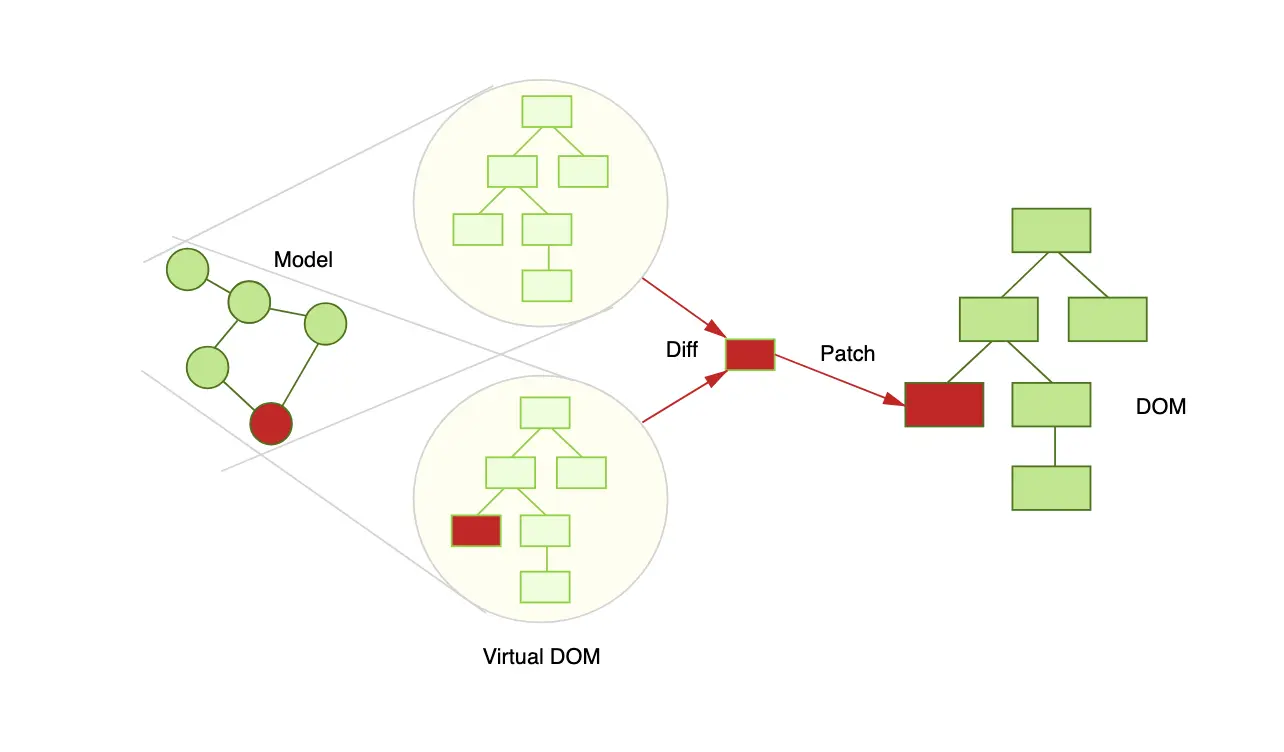 patch(vnode, newVnode); // Snabbdom efficiently updates the old view to the new state