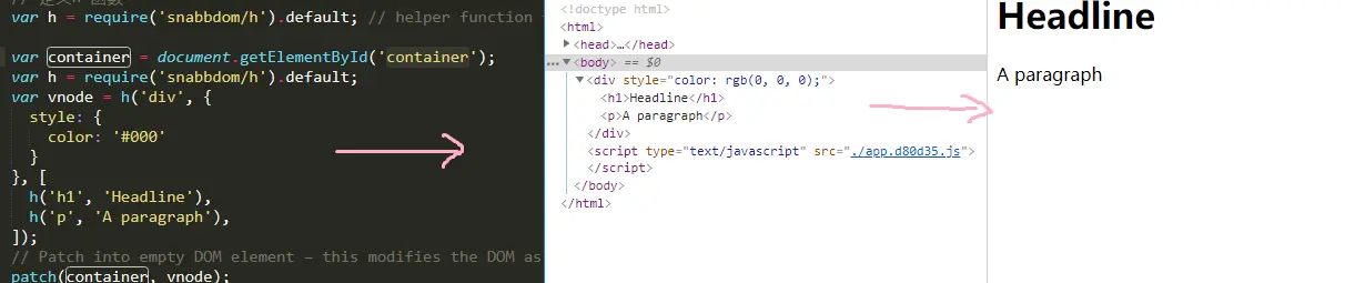 virtual dom 的简单应用 此处snabbdom(A virtual dom library with focus on simplicity, modularity, powerful features and performance.) 库来举例(因为vue Virtual DOM 借鉴 Snabbdom库,想更多了解一下),当然也有其他的库 javaScript virtual dom 库。