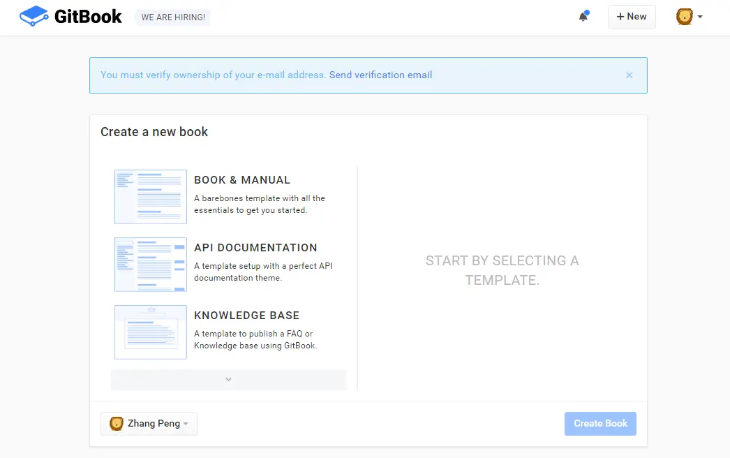 绑定了 Github 账号后,你可以在新建电子书时,选择从一个指定的 Github 仓库导入电子书项目。参考下图: