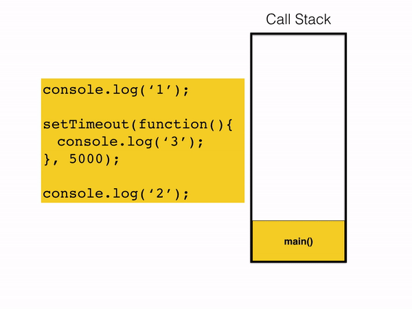 函数在调用的时候会在调用栈中 push 一个调用帧,每次执行完函数都会逐一弹出调用帧知道所有函数执行完毕,调用栈被清空: