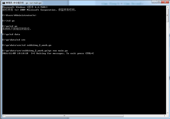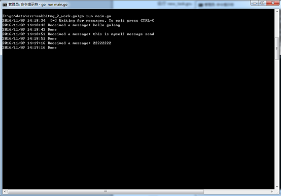 可以看到,work.go循环监听消息并打印,new_task.go中,我们接收控制台参数作为消息内容并发送,消息接收后自动应答。