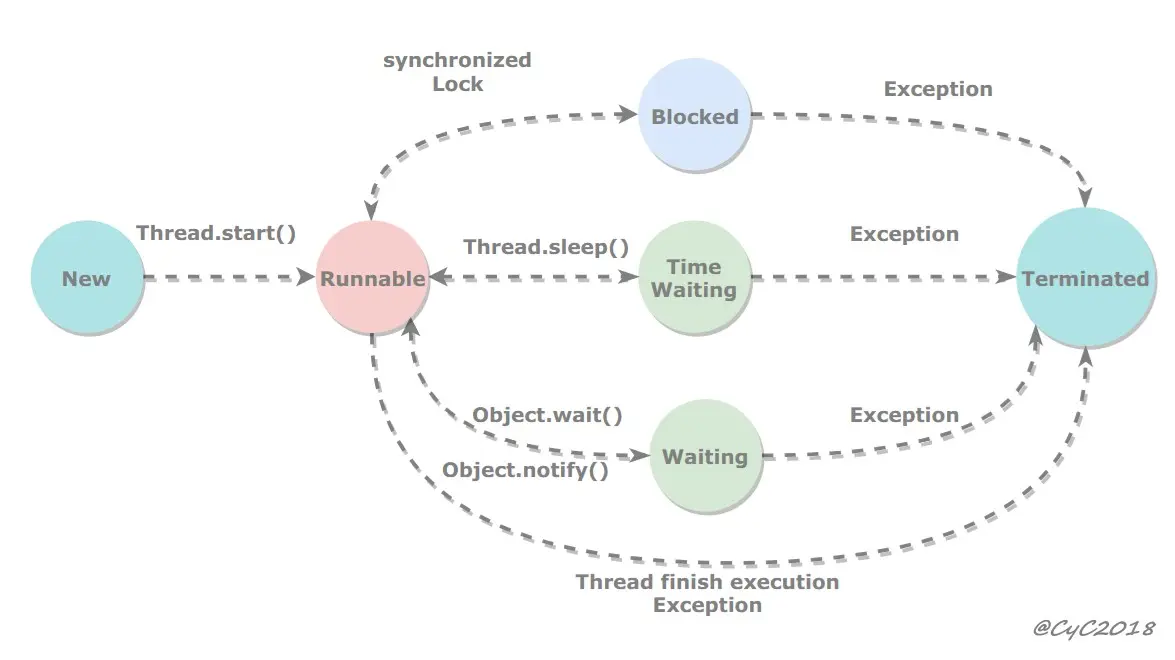 | 设置了 Timeout 参数的 Object.wait() 方法 | 时间结束 / Object.notify() / Object.notifyAll() |