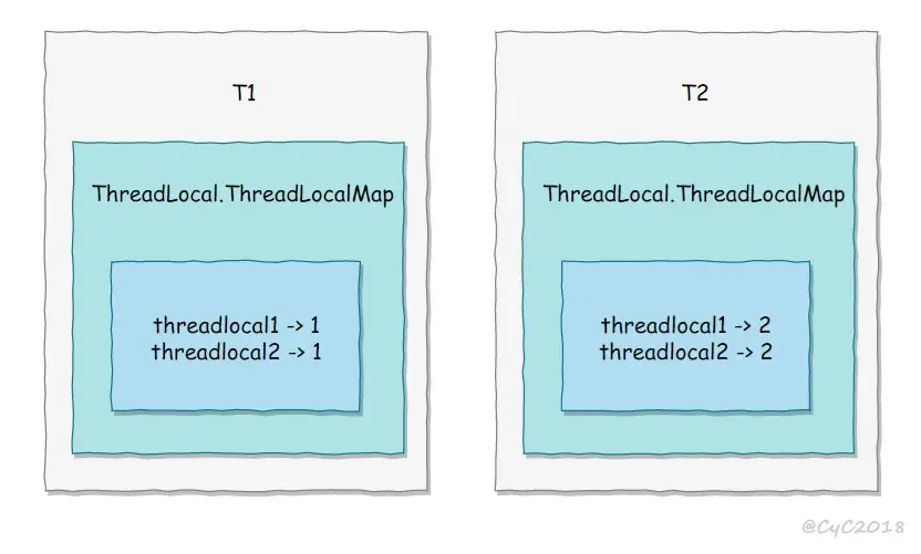 每个 Thread 都有一个 ThreadLocal.ThreadLocalMap 对象。